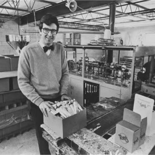 The Tom’s of Maine company was founded to make products that are good for people and good for the planet, and we stand by it. From the earliest days when we’d pick up giant mail bags full of bottles that our customers sent to us to refill, we’ve always believed that, as a company, rolling up our sleeves and making natural alternatives makes a difference. And don’t worry, we’ve stopped annoying the post office.